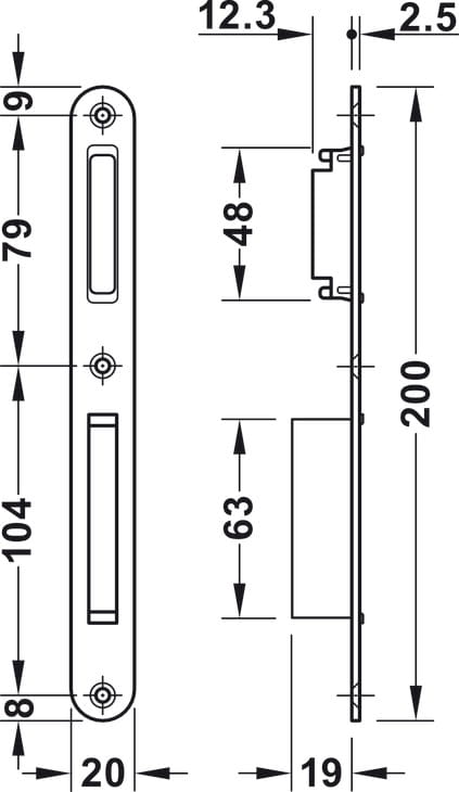 Blacha zaczepowa płaska Startec 200 mm, STAL NIERDZEWNA Häfele 911.07.289