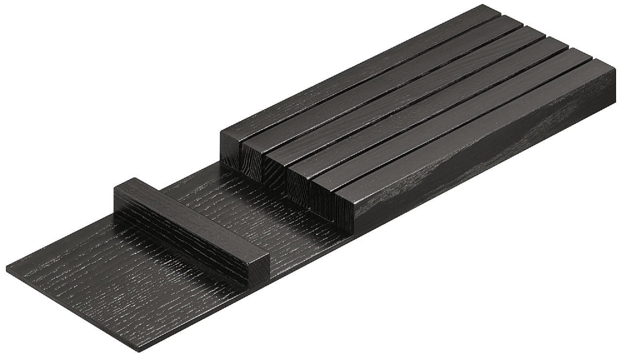 Blok na noże, przegrody do szuflad, drewniany 137,5x472x26mm JESION CZARNY BEJCOWANY HÄFELE 550.31.340