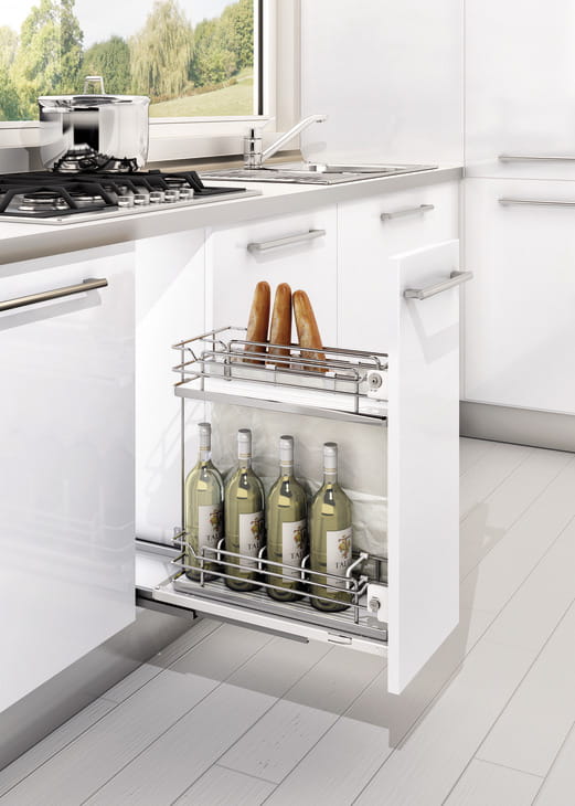 Cargo podblatowe SIGE 007i, front 300 na prowadnicy SIGE z pojemnikiem na chleb HÄFELE 549.28.253