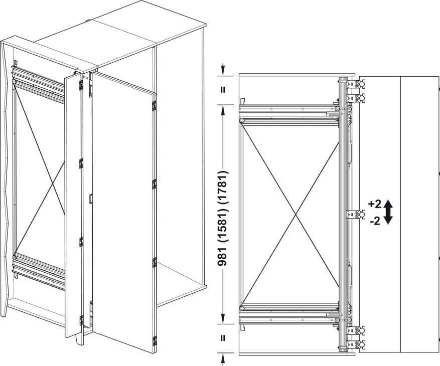 Finetta Spinfront 60 2D - kpl do 1 skrzydła drzwi podówjnych 2200-2700, gł. zab. 805 HÄFELE 408.45.012