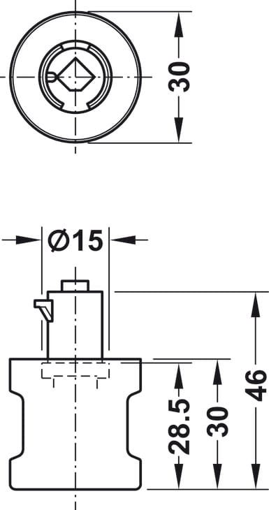 Gałka obrotowa długość 30 mm do wszystkich zamków i wkładek bębenkowych Symo.