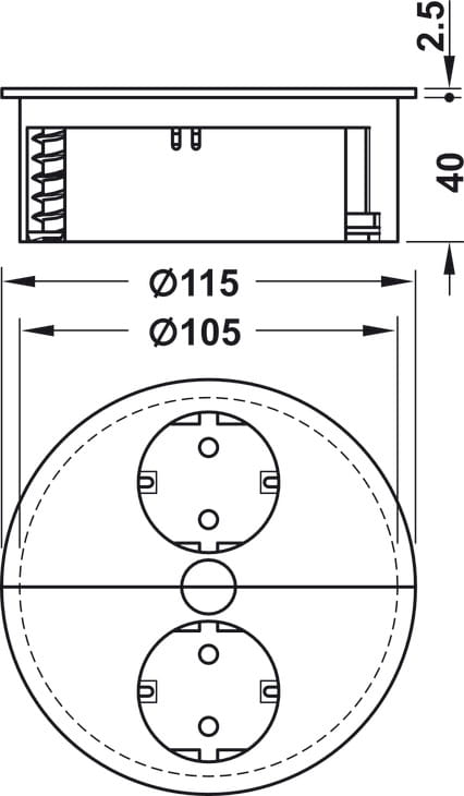 Gniazdo wielopunktowe TWIST 2 gniazda UTE, kolor CZARNY MAT HÄFELE 822.93.092