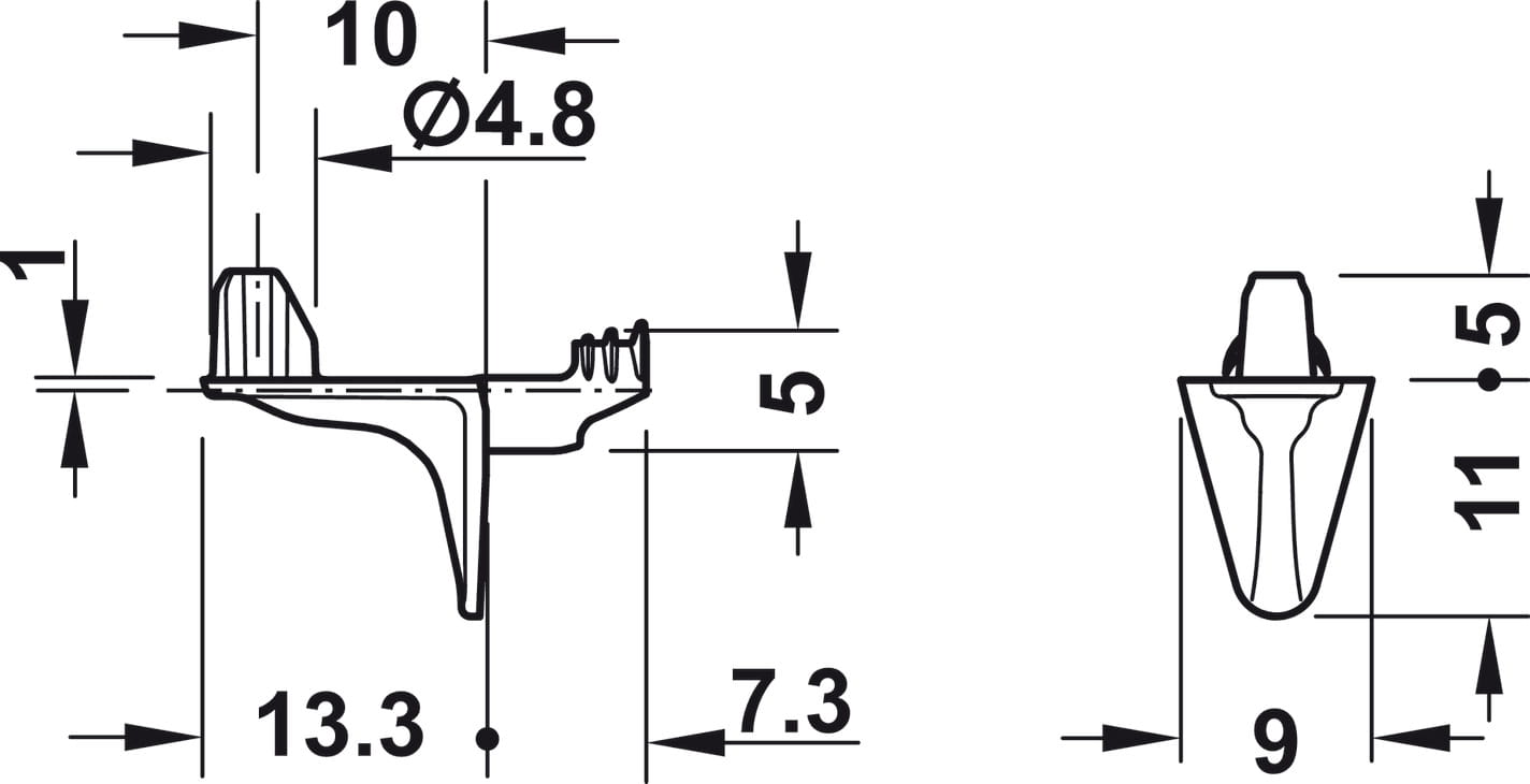 Podpórki półek drewnianych do osadzania w otworze o średnicy 5 mm.