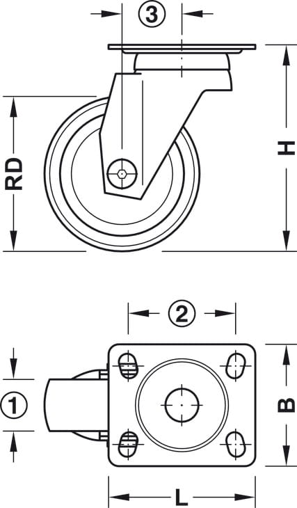 KÓŁKO Z PŁYTKĄ skrętne bez blokady, nośność 50kg, Ø=75mm, STAL/GUMA, k.CZARNY HÄFELE 663.17.055