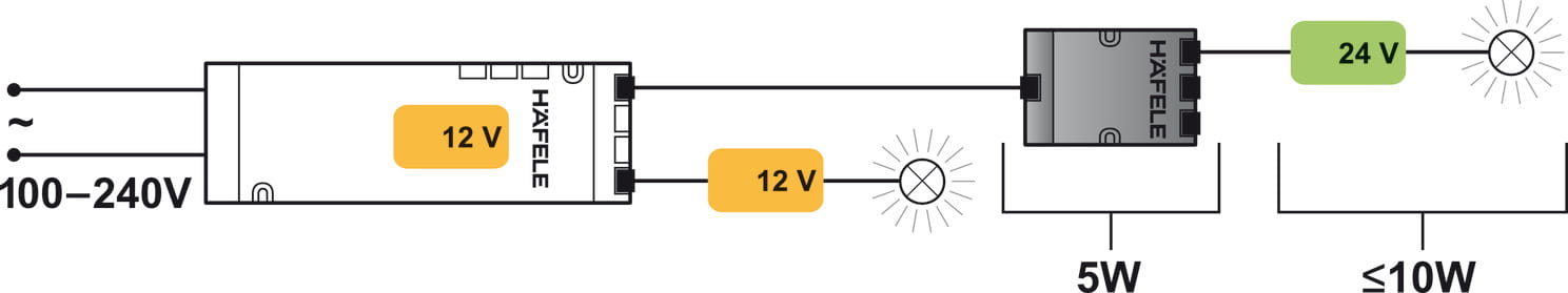 Konwerter do podłączenia opraw LED 24V do zasilacza 12V HÄFELE 833.77.934