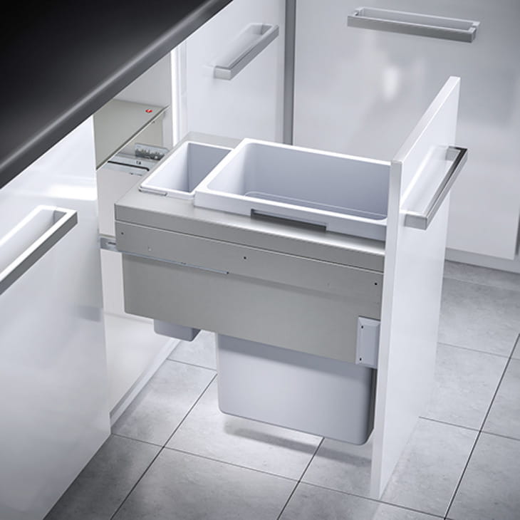 Kosz na śmieci PODWÓJNY do szafki min. 400 mm, Hailo Euro-Cargo 3619421, 1 x 7 i 1 x 38 litrów, k.JASNOSZARY HÄFELE 503.70.511