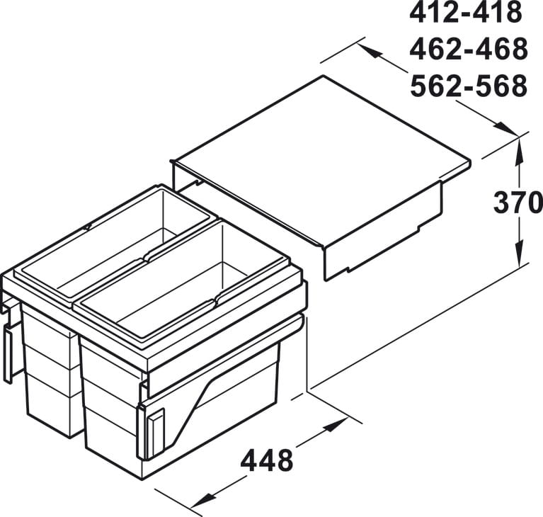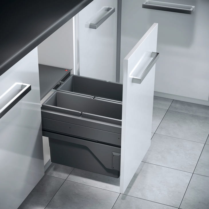 Kosz na śmieci PODWÓJNY do szafki min. 450 mm, Hailo Cargo 3610811, 1 x 21 i 1 x 17 litrów HÄFELE 502.58.333
