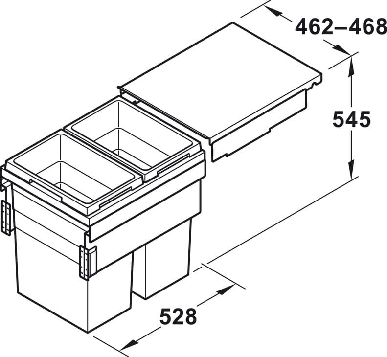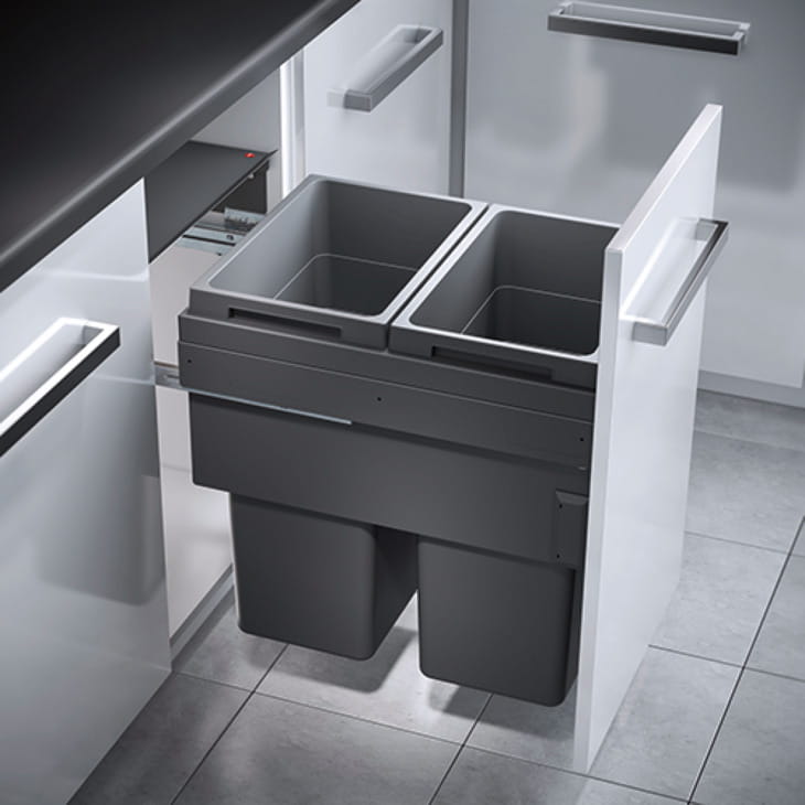 Kosz na śmieci PODWÓJNY do szafki min. 450 mm, Hailo Euro-Cargo 3619731, 2 x 38 litrów, k.ANTRACYT HÄFELE 503.70.332