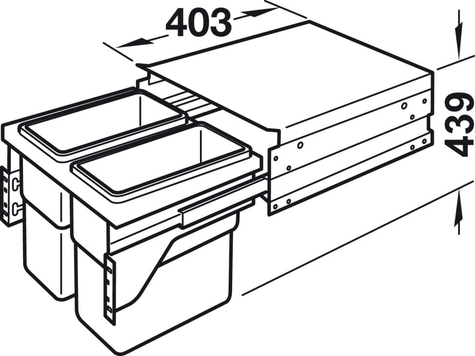 Kosz na śmieci PODWÓJNY do szafki min. 450 mm, Hailo Euro-Cargo-S 3610-47, 2 x 19 litrów HÄFELE 502.73.901
