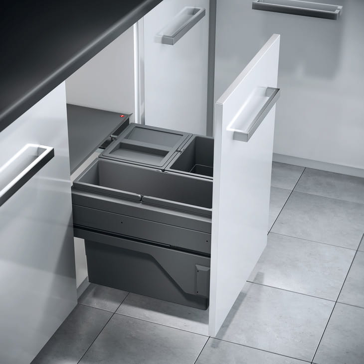 Kosz na śmieci POTRÓJNY do szafki min. 500 mm, Hailo Cargo 3610831, 1 x 17 i 2 x 13 litrów HÄFELE 502.58.324