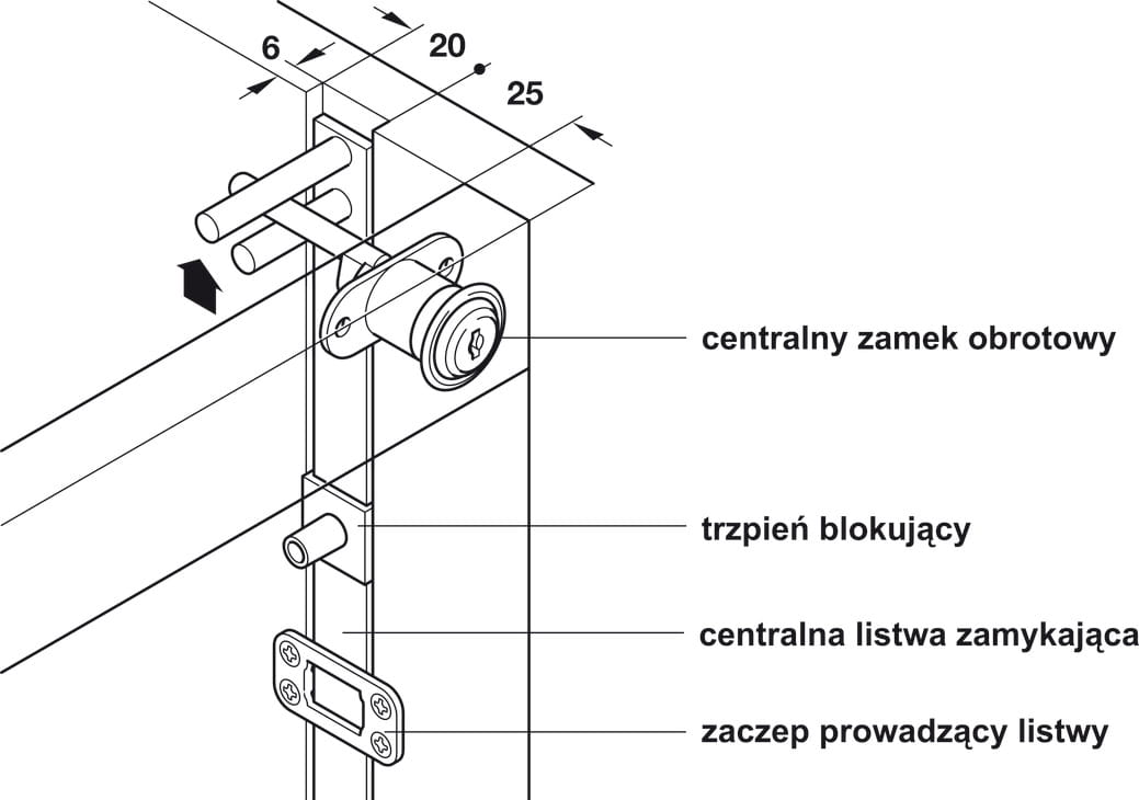 LISTWA L=800mm do zamka centralnego Häfele 237.10.004