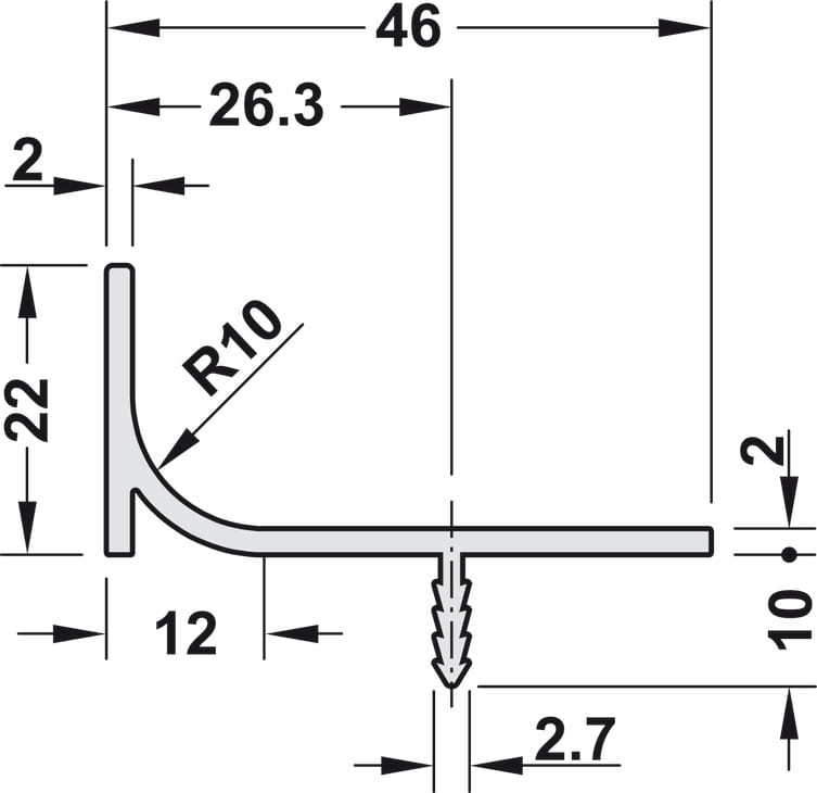 Listwa uchwytowa pionowa F, długość 2500mm, ALUMINIUM, k.ELOKSALOWANA NA SREBRNO HÄFELE 126.37.922