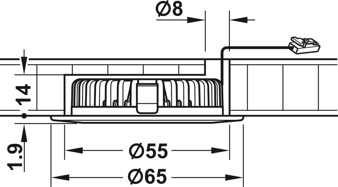 • zabezpieczona przed wodą rozpryskową, do użytku w wilgotnych pomieszczeniach, w wariancie montażu wpuszczanego (osadzenia w otworze)