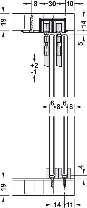 Okucie do drzwi przesuwnych Infront z hamulcem, Hawa Clipo 16 GK IF do 2 skrzydeł drzwi HÄFELE 405.82.227