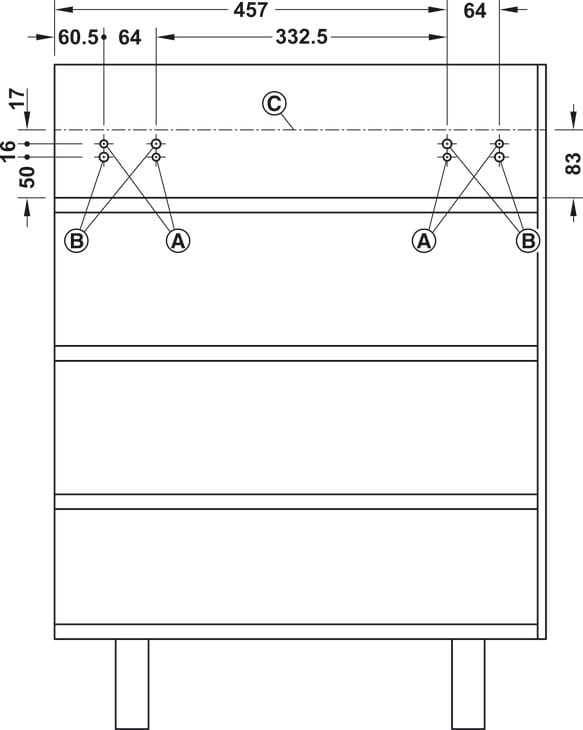 6 zawiasów do składania blatu, 1 uchwyt muszlowy oraz okucia do frontu szuflady należy zamówić dodatkowo.