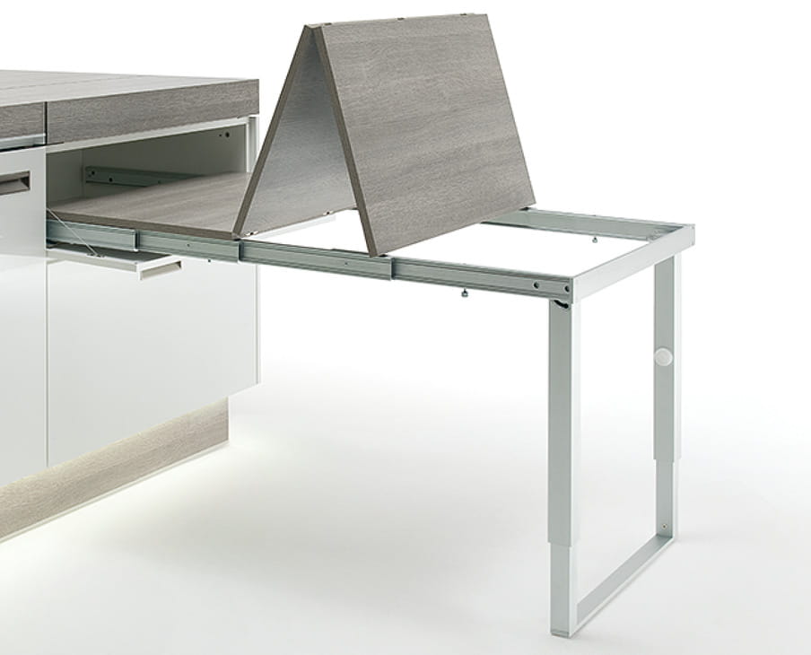 Okucie składane do stołów rozkładanych w miejscu szuflady. Maksymalnie 7 miejsc przy stole.