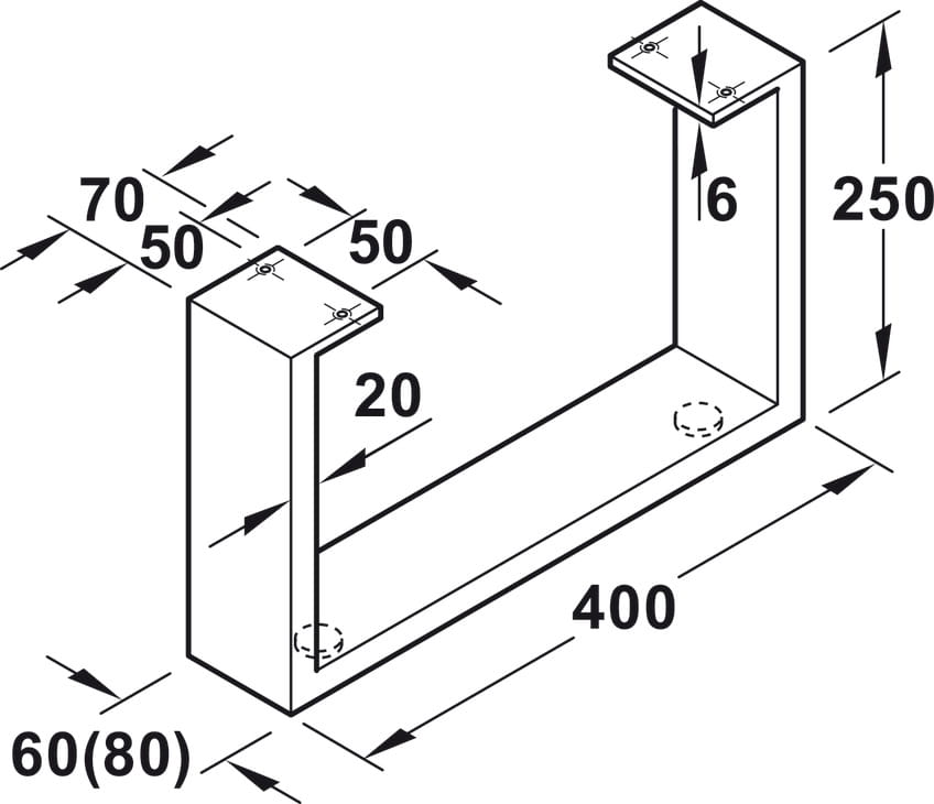 PŁOZA do mebli, profil 60 X 20 mm, udźwig 200kg, STAL SUROWA HÄFELE 638.29.073