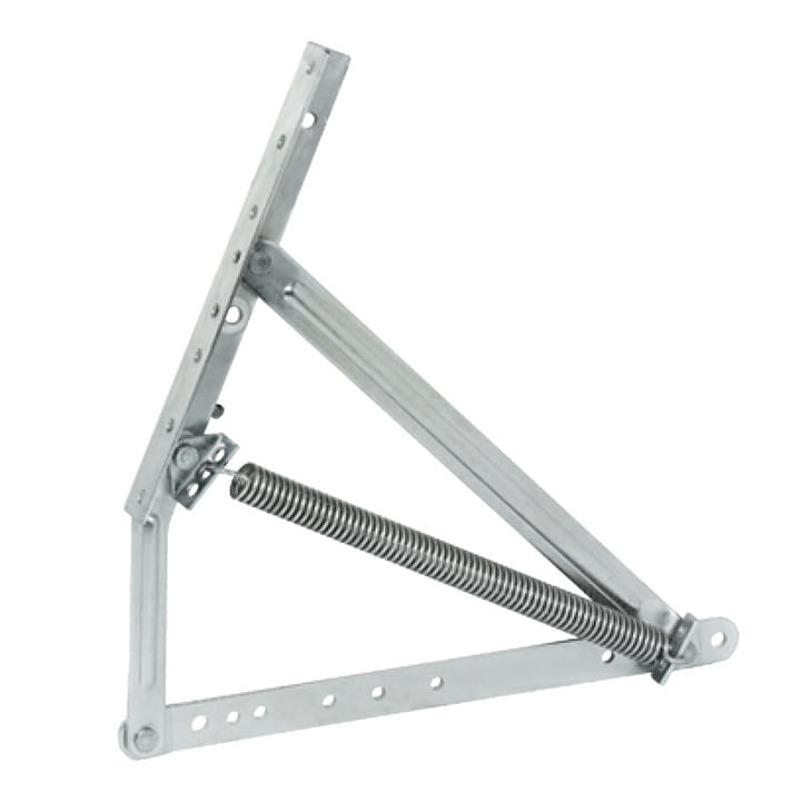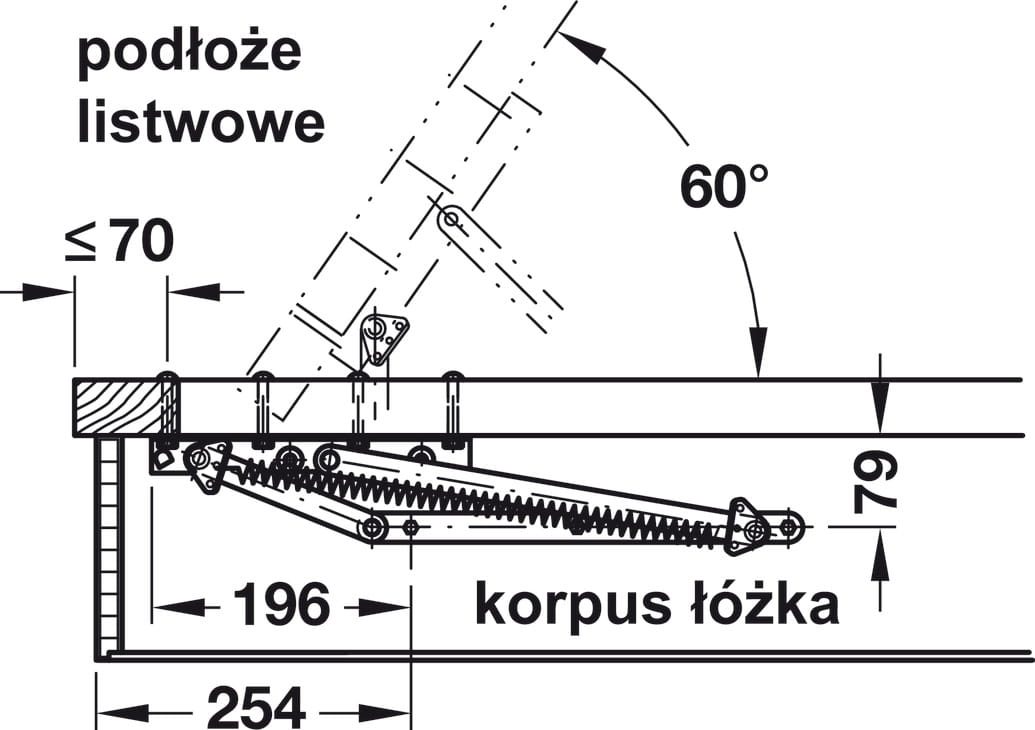 Podnośnik do leżanek i łóżek rozkładanych do zabudowy poprzecznej. Ponieważ okucie przemieszcza się w zabudowie łóżka do góry, nie