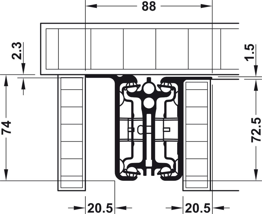 PROWADNICA DO STOŁÓW przedłużające jedną strone stołu o 1-2 składane blaty, długość montażowa 1800mm HÄFELE 642.25.936