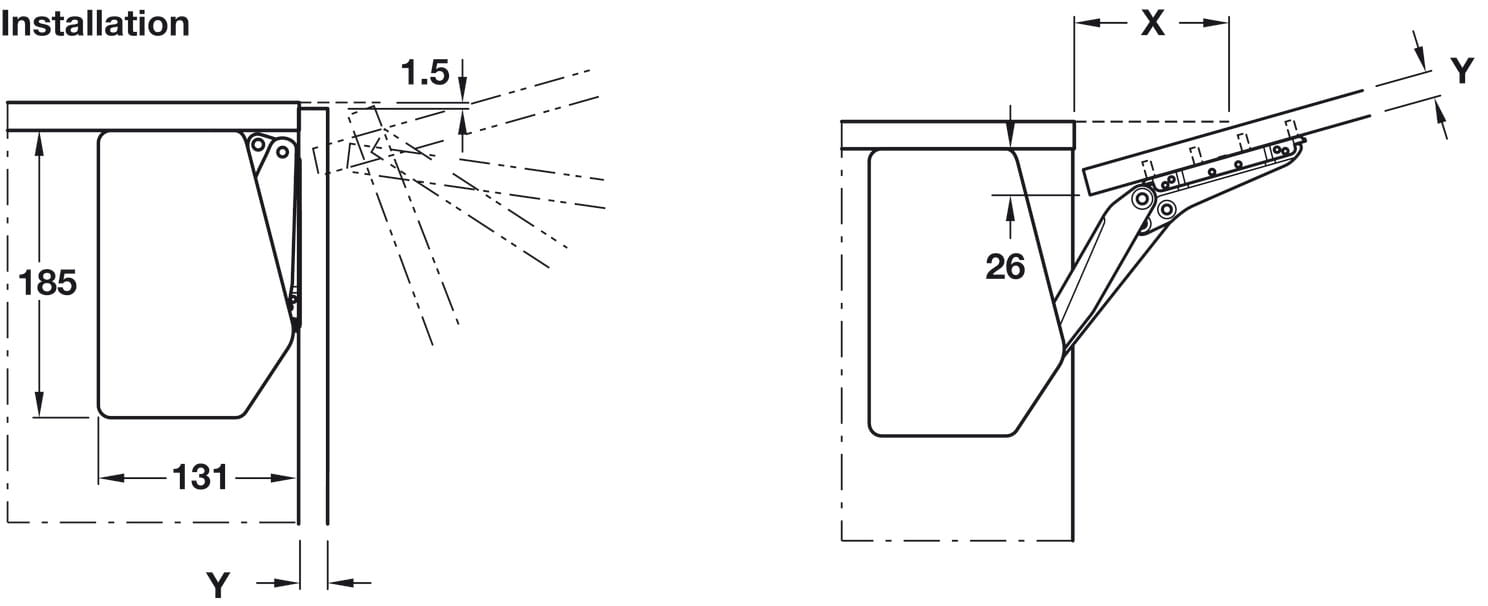 1 komplet Häfele Free flap 3,15 model G