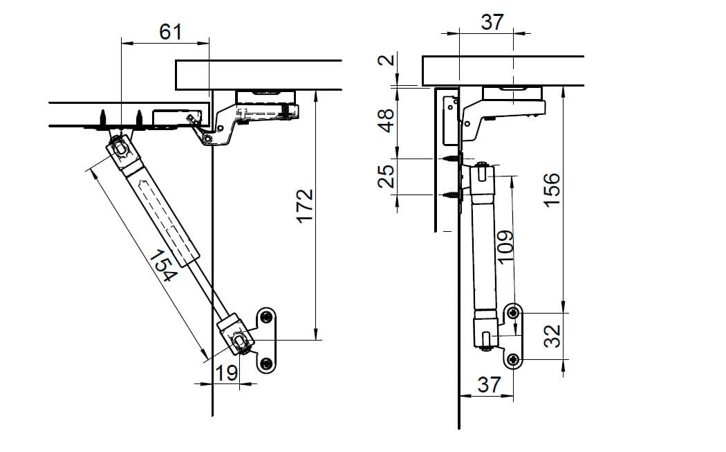 Podnośnik pneumatyczny do klap krótki 154mm 60N HÄFELE 373.82.231