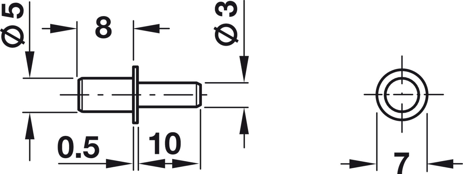 Podpórki półek drewnianych do osadzania w otworze o średnicy 5 mm. Stal, udźwig 80 kg (według normy DIN EN 1727:1998-06).