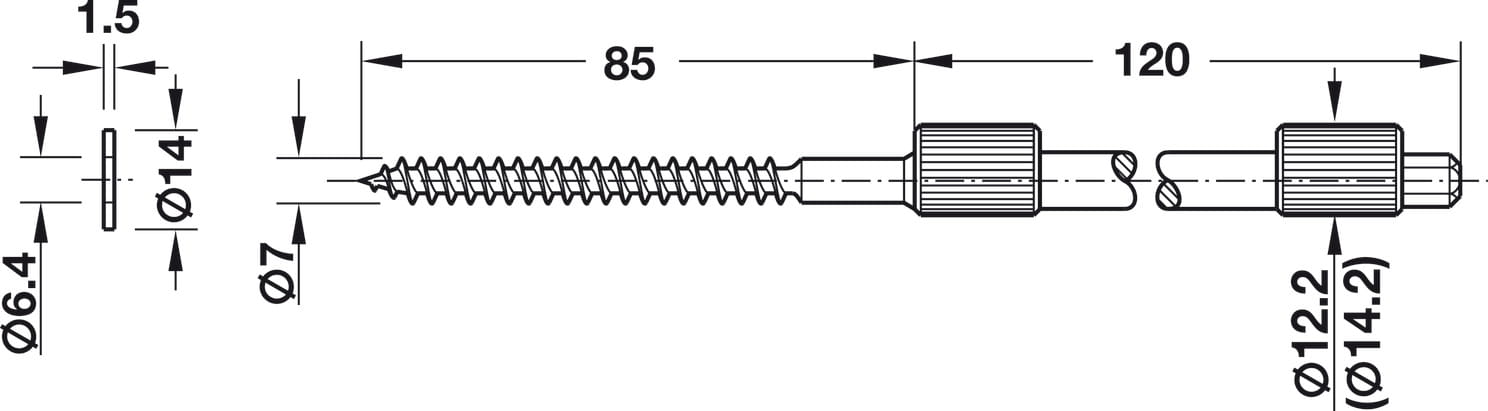 > Wersja: Śruba podporowa z tuleją mimośrodową, wkręt do drewna i kołek rozporowy