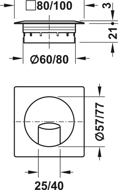 Przelotka kablowa, kwadratowa 80 x 80mm, mocowana w otworze Ø 60 mm, k. CZARNY Häfele 631.07.312