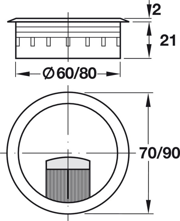 Przelotka kablowa, okrągła Ø 70 mm, k. ALUMINIUM Häfele 631.35.212