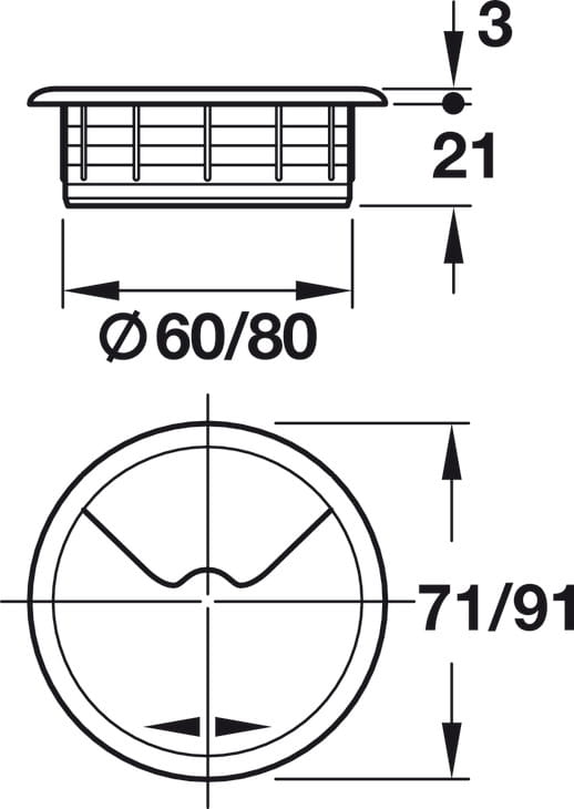 Przelotka kablowa, okrągła Ø 91 mm, k. CZARNY Häfele 428.96.304