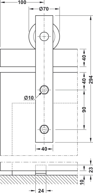 > Obszar zastosowania: do drzwi przesuwnych 1-skrzydłowych