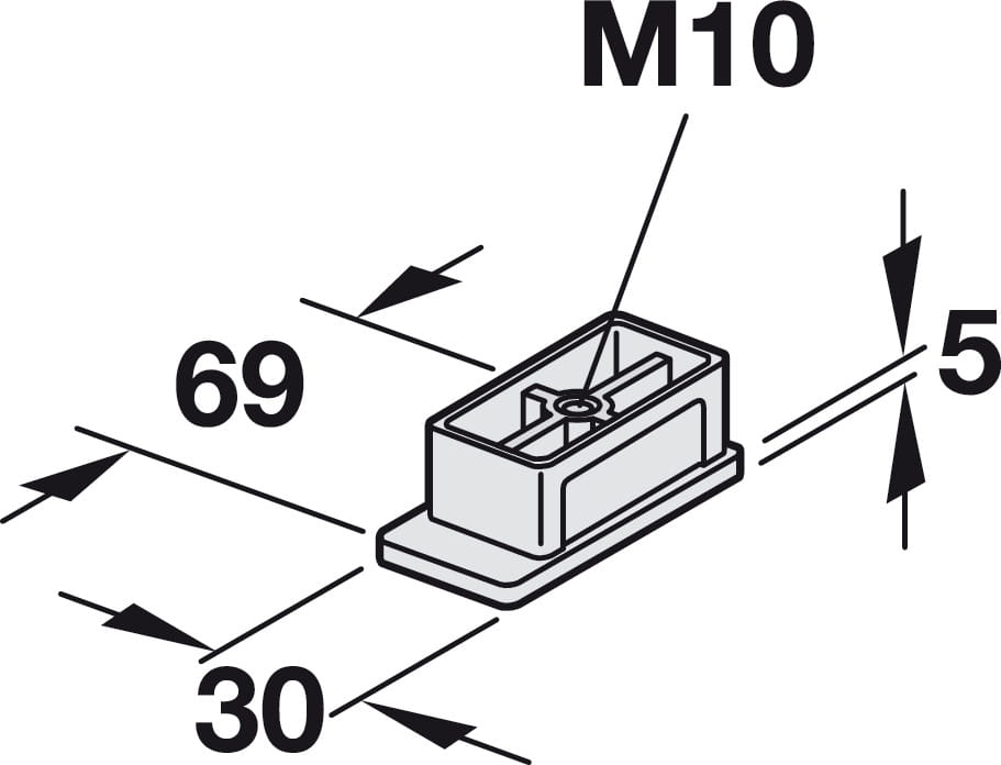 Stopka do kolumny 60 x 30 mm z gwintem M10, do mocowania śruby mocującej na dole HÄFELE 770.16.294