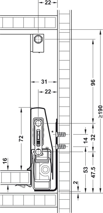 Mocowanie frontu ⓒ do szuflady nie wchodzi w zakres dostawy, dlatego należy zamówić je dodatkowo.