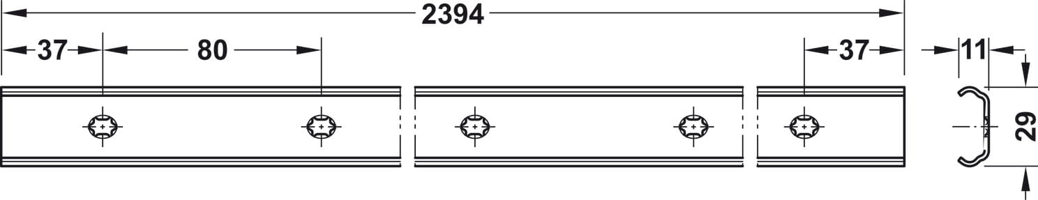 Szyna jezdna do poziomego przesuwania, STAL GALWANIZOWANA 29mm/2394mm HÄFELE 421.85.111