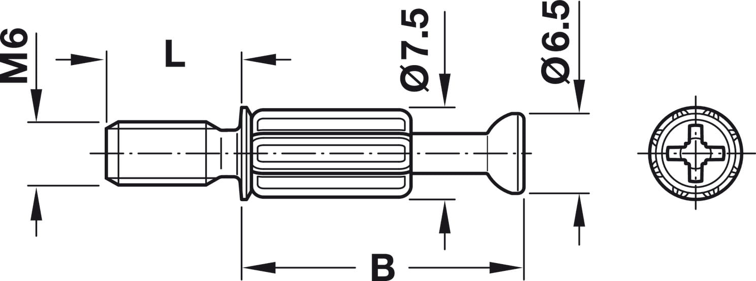 Trzpień łączący z gwintem M6 Minifix S200 6,5/7,5/34mm 100szt SUROWY HÄFELE 262.28.690