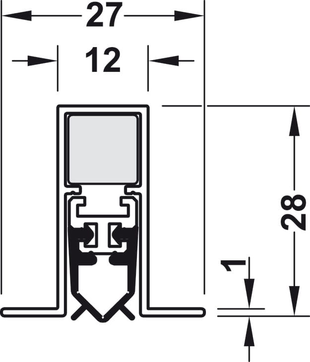 USZCZELKA opadająca DDS12 montowana od dołu, dwustronna, długość: 1130mm, ALUMINIUM KOLOR SREBRNY HÄFELE 950.05.985