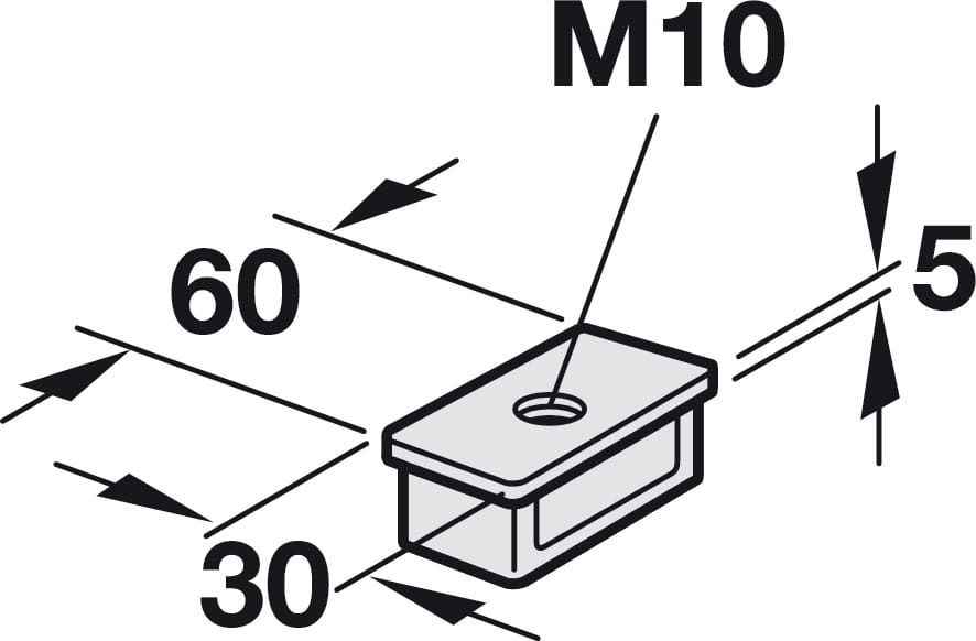 Wkładka do kolumny 60 x 30 mm z gwintem M10, do mocowania śruby mocującej na górze lub na dole HÄFELE 770.16.292