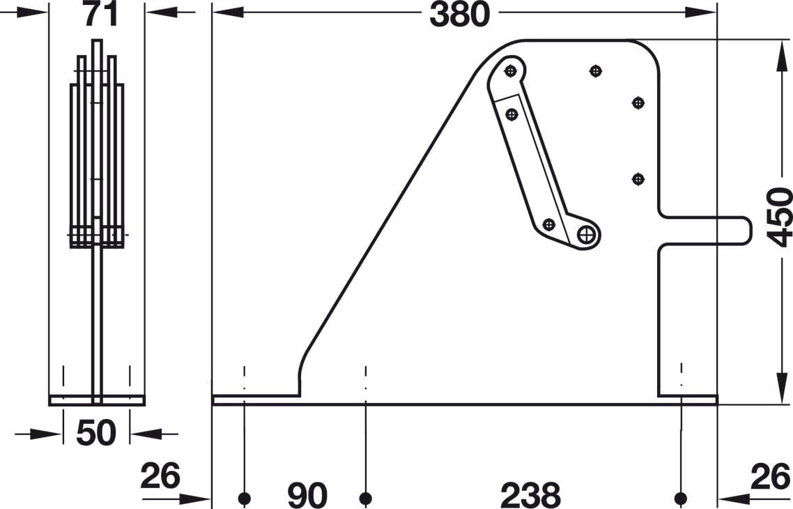 Wspornik środkowy do łączenia dwóch łóżek Bettlift 900mm Häfele 271.87.101