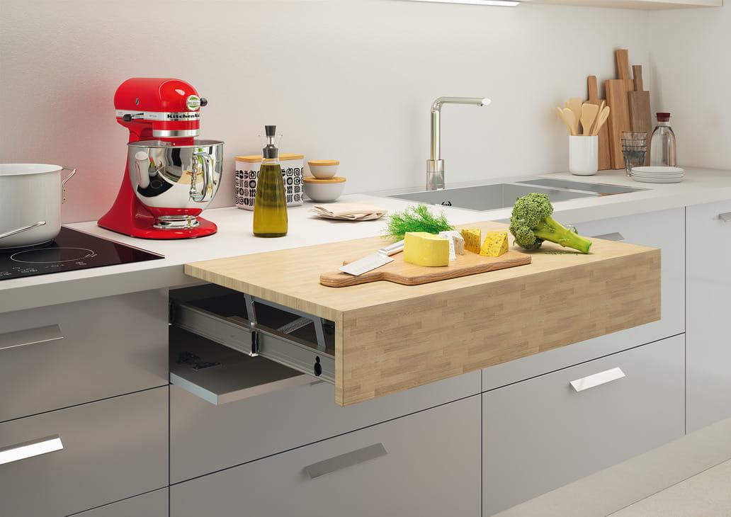 Wyciągany blat, samonośny, do szerokości szafki 600mm, udżwig 40kg HÄFELE 505.75.984
