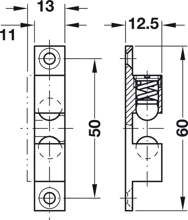Zatrzask kulkowy podwójny, do przykręcenia, 60mm, MOSIĄDZ/STAL NIERDZEWNA (kulki) HÄFELE 244.20.016