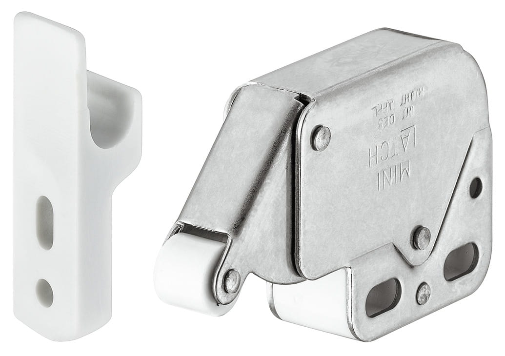 Zatrzask sprężynowy Mini-Latch STAL NIERDZEWNA z BIAŁYM zaczepem HÄFELE 245.54.707