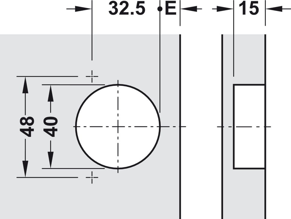 Zawias bliźniaczy do szerokich frontów, do 900mm, kąt otwarcia 95° ze sprężyną dociągającą, k. NIKIEL Häfele 327.22.511