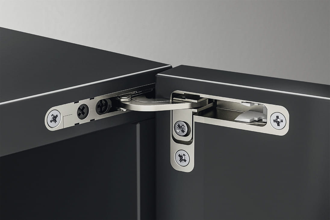 Zawias specjalny (1kpl) 103°, do płyty o grubości od 18 mm do 32 mm ze sprężyną otwierającą, do otwierania bez uchwytów, k.NIKIEL SATYNA HÄFELE 342.79.720