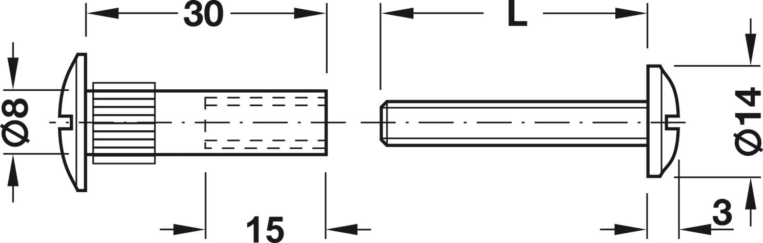 Złącze śrubowe 2-częściowe do grubości płyty 46-56mm z gwinetm M6 z nacięciem krzyżowym PZ, op.100szt HÄFELE 267.05.704