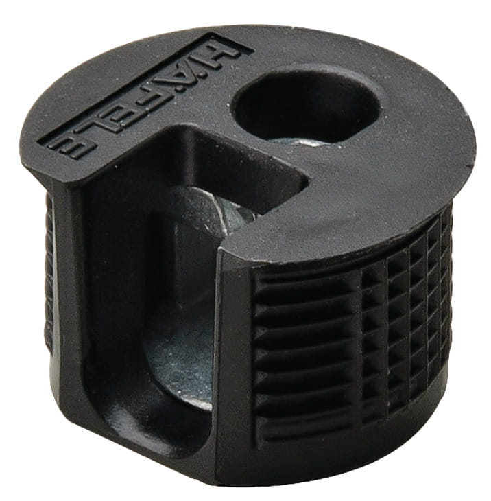 Złączka Rafix 20 bez trzpienia kołkowego z dociągiem i kołnierzem do grubości płyty 19mm, gł. wiercenia 14,2mm CZARNA 100szt HÄFELE 263.50.305