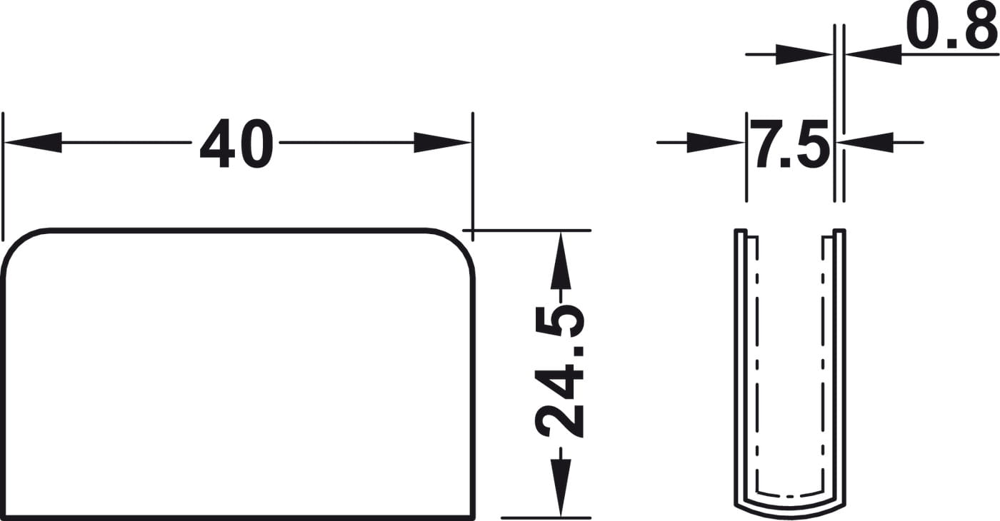 Płytka zatrzaskowa, do zatrzasku magnetycznego naciskowego do drzwi szklanych, wysokość 24,5 mm