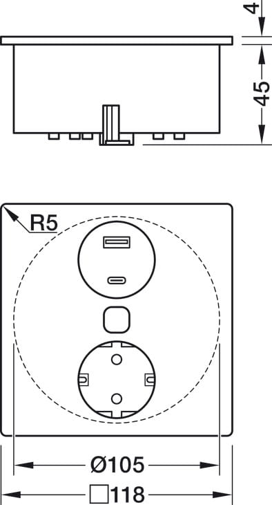 Gniazdo wpuszczane DUPLEX R, 1x CEE, 1x USB A, 1xUSB C czarny HÄFELE 820.52.712