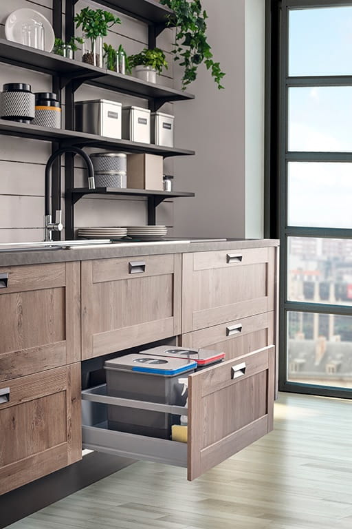 System sortowników odpadów Unico przeznaczony do wszystkich rodzajów szuflad o szerokości frontu 600 mm.